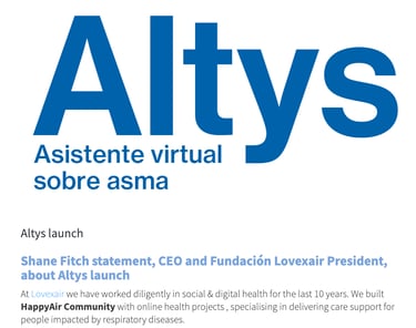 Together with the LoveXair Foundation we developed Altys - a virtual health assistant for asthma patients. The App aimed to help people managing their asthma more easily and to increase treatment plan adherence. We focused on sustainable behaviour change by addressing identified patient personas based on the SPUR (Social - Psychological - Usage - Rational) behavioural diagnostic tool developed by Observia.